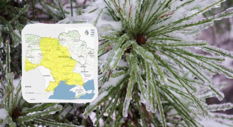 У південно-західній частині, на Черкащині та Кіровоградщині вранці туман, упродовж доби (вдень і на Житомирщині, Київщині та Херсонщині) ожеледь.